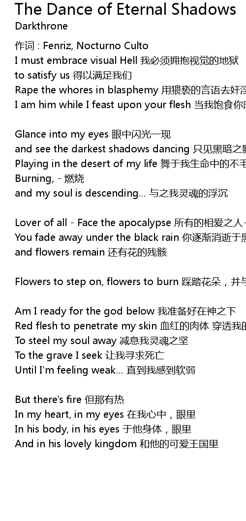 | and see the darkest shadows dancing 只见黑暗之影起舞 | |