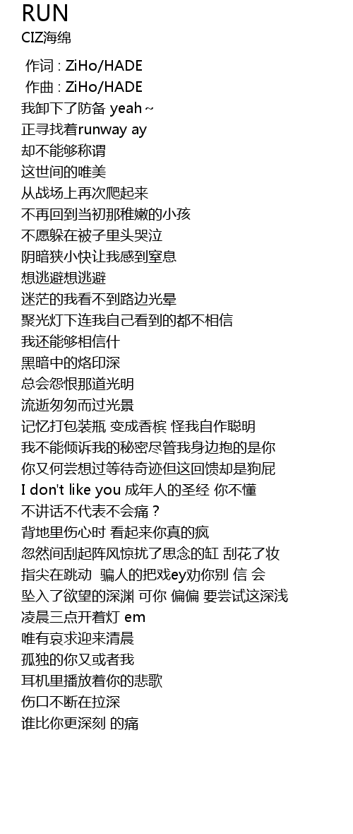 | [00:00.000] | zuò cí : ZiHo HADE |