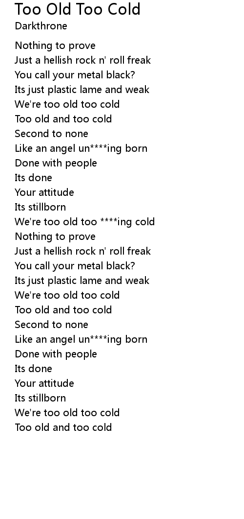 We're too old too cold |