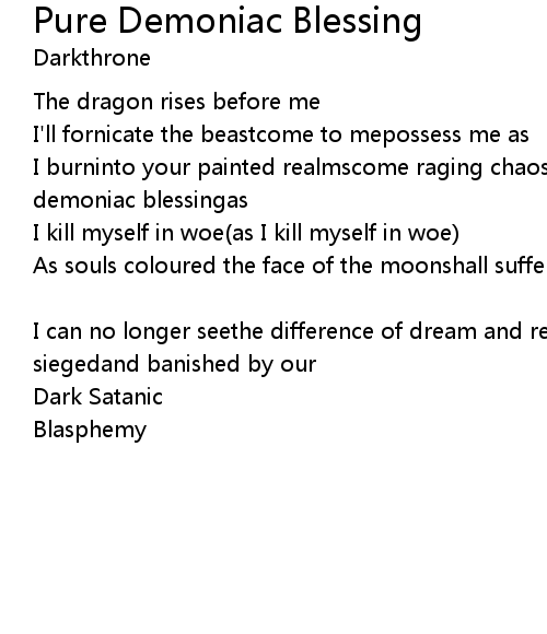 | I burninto your painted realmscome raging chaosrule power from your soulpure demoniac blessingas | |