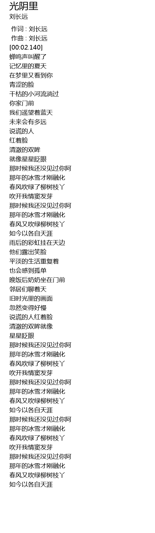 | [00:00.000] | 作词 : 刘长远 |
