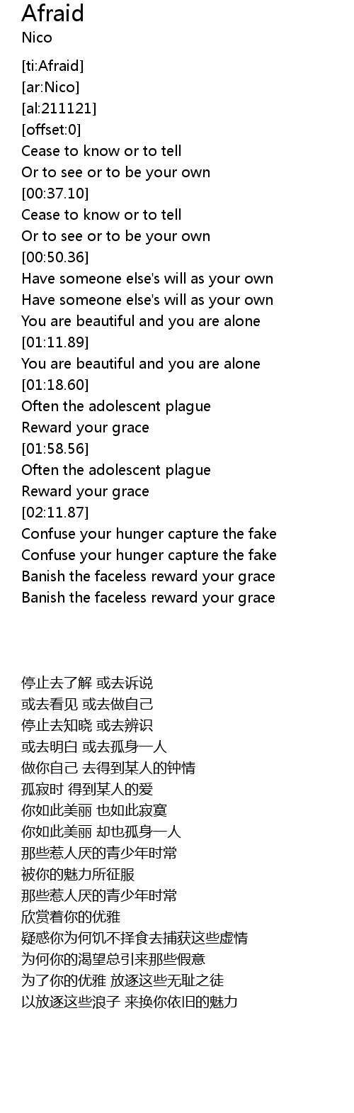 [ti:Afraid] |