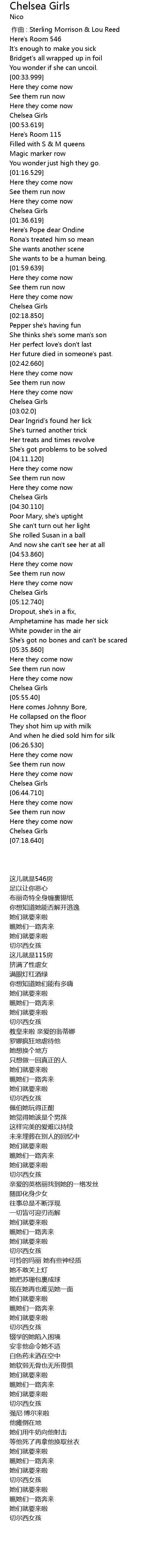 | [04:26.500] | Chelsea Girls |