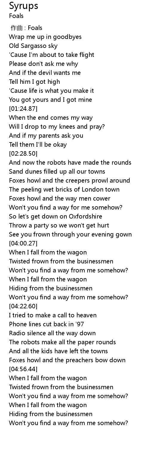 | [04:58.41] | When I fall from the wagon |