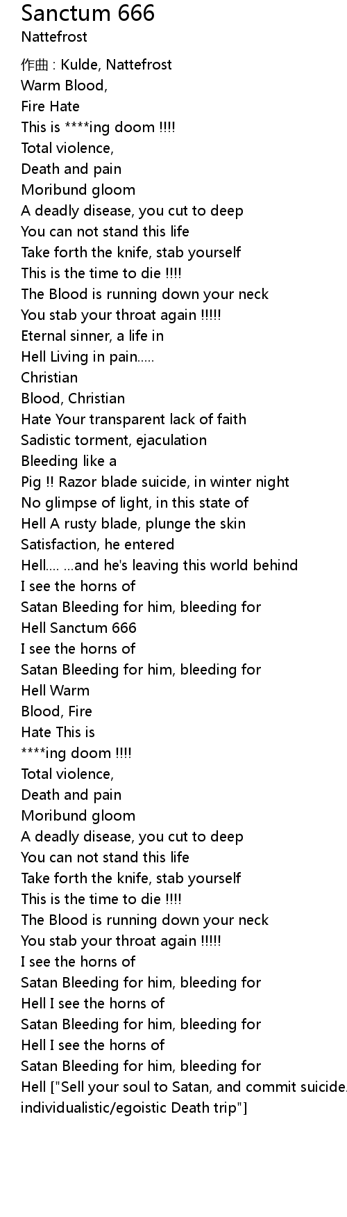 | Hell " Sell your soul to Satan, and commit suicide. A pure individualistic egoistic Death trip" |