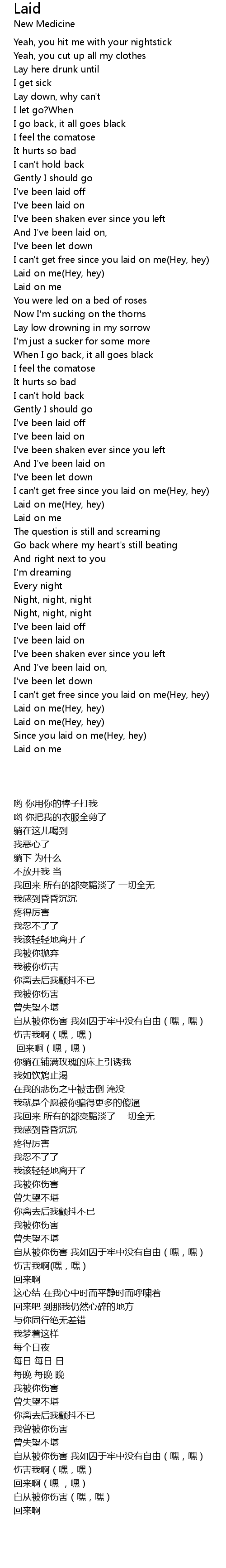 And I've been laid on, |