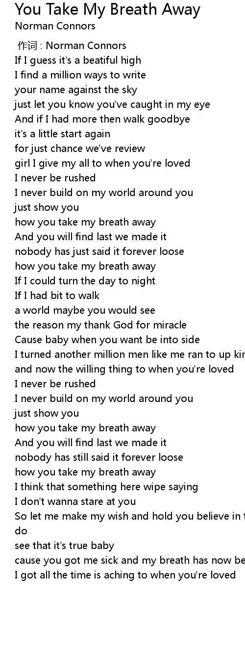| [01:22.41] | how you take my breath away |