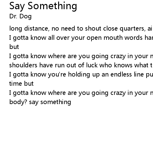 | I gotta know all over your open mouth words hang like they're just hanging out but | |