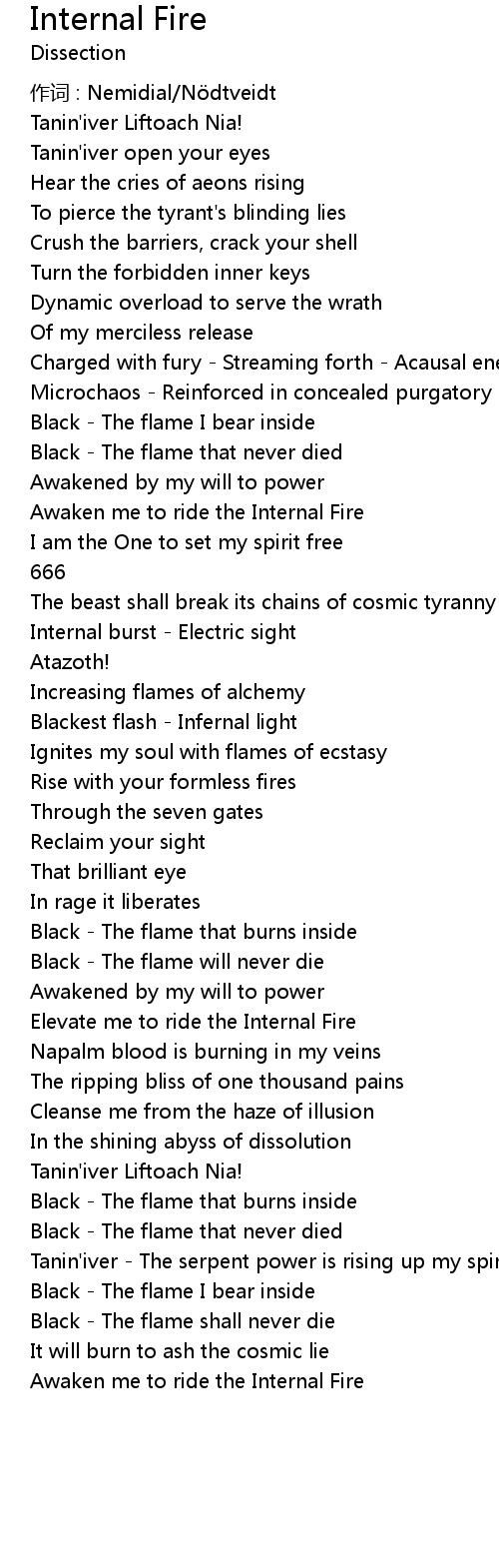 | Awaken me to ride the Internal Fire |