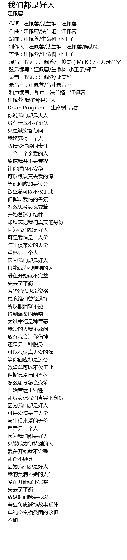 | [00:00.117] | 汪佩蓉-我们都是好人 |