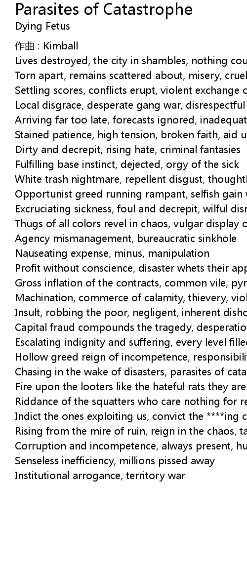 | Song | Parasites of Catastrophe |