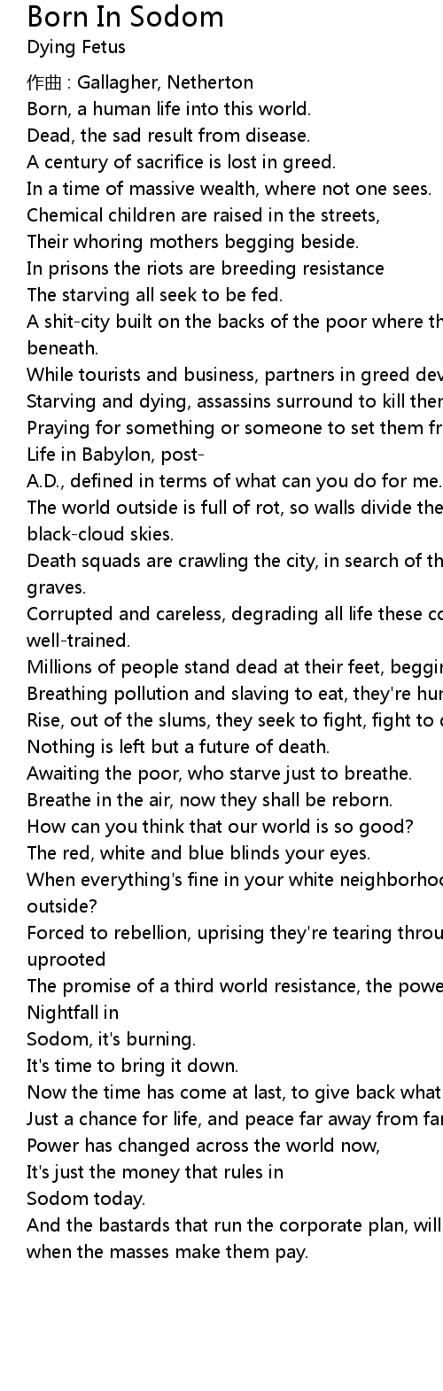 | Breathing pollution and slaving to eat, they' re humans, but empty inside. | |