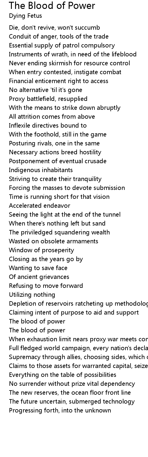 The Blood of Power Lyrics