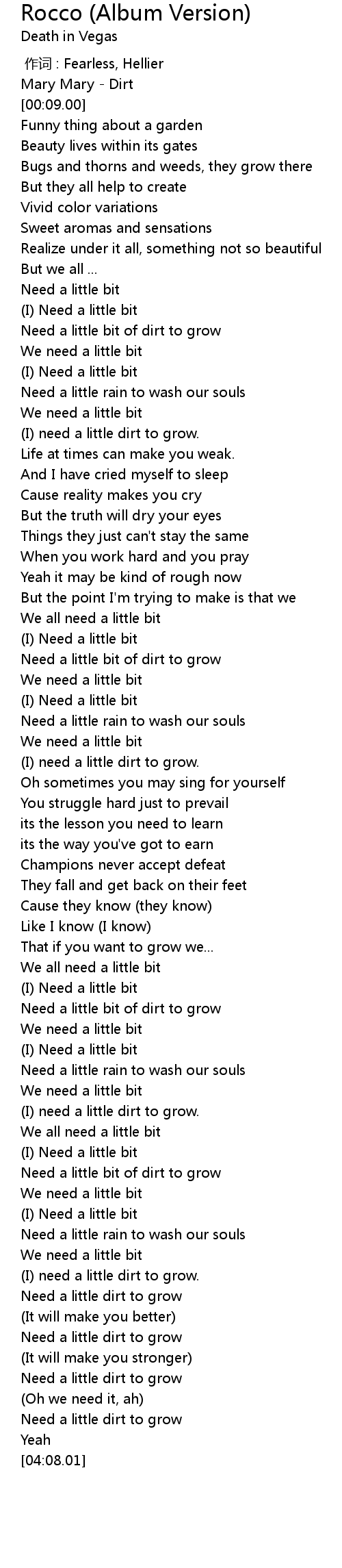 | [03:57.02] | Need a little dirt to grow |