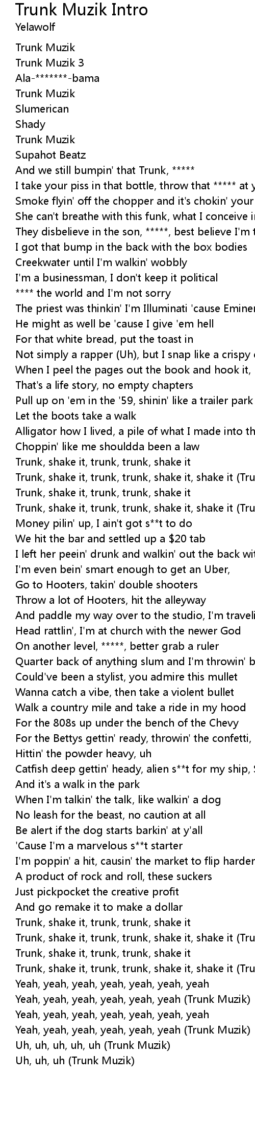 Trunk, shake it, trunk, trunk, shake it, shake it (Trunk Muzik) |
