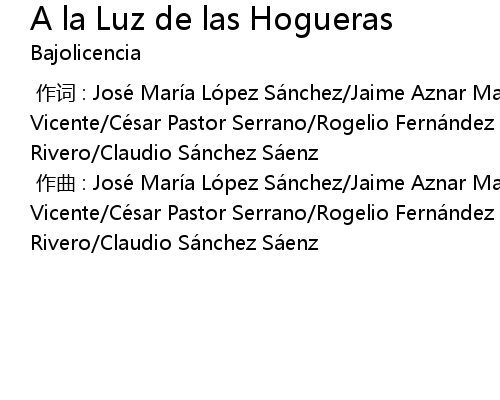 | [00:00.000] | 作曲 : José María López Sánchez/Jaime Aznar Martínez De San Vicente/César Pastor Serrano/Rogelio Fernández Páez/Héctor José González Rivero/Claudio Sánchez Sáenz |