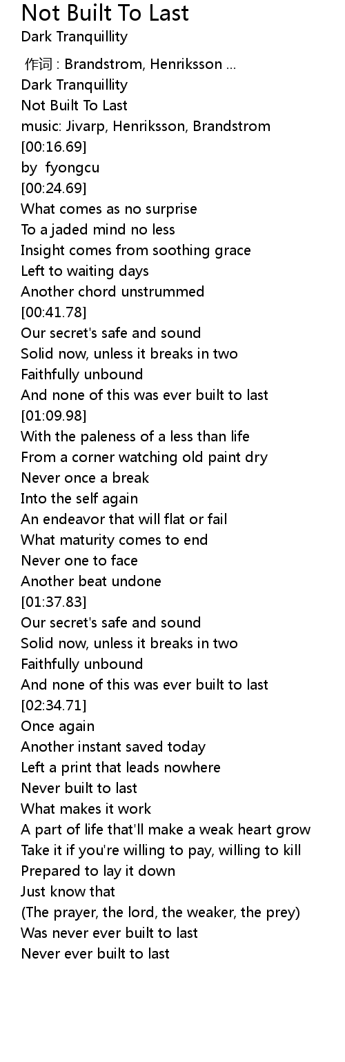 | [03:01.04] | Never built to last |