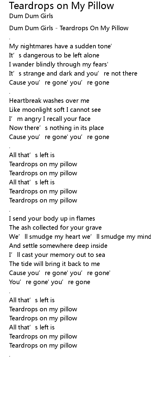 | [00:00.08] | Dum Dum Girls Teardrops On My Pillow |