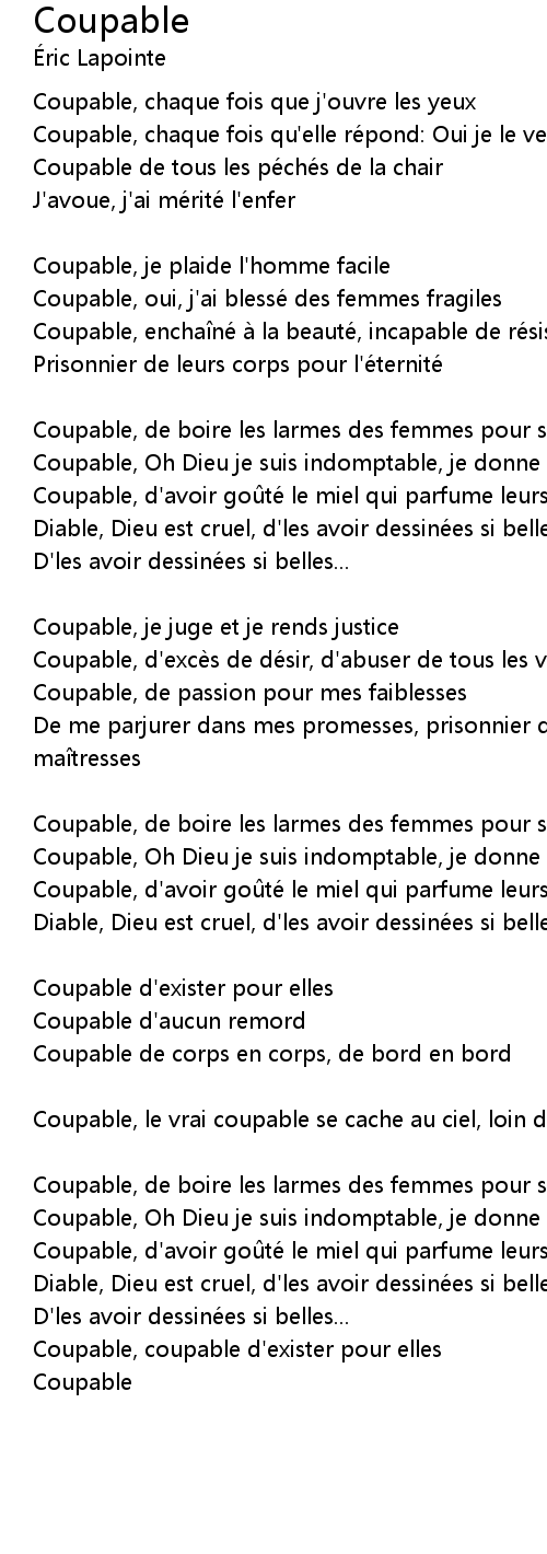 | Coupable, encha ne a la beaute, incapable de re sister | |
