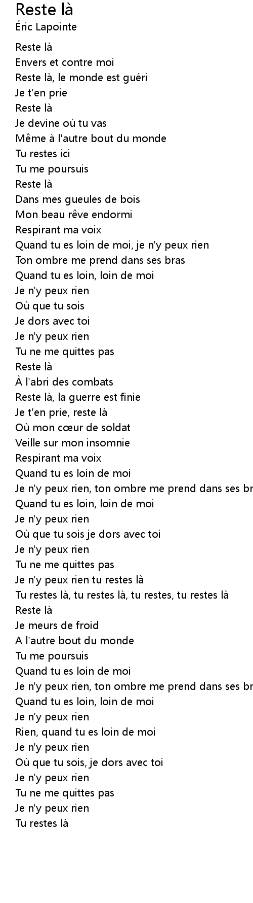 | Tu restes là, tu restes là, tu restes, tu restes là | |