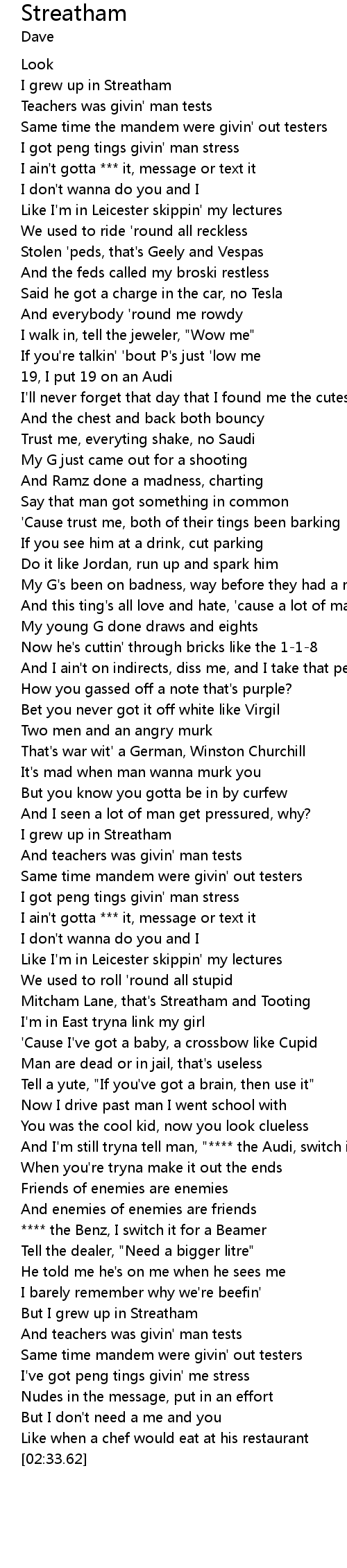But I grew up in Streatham |