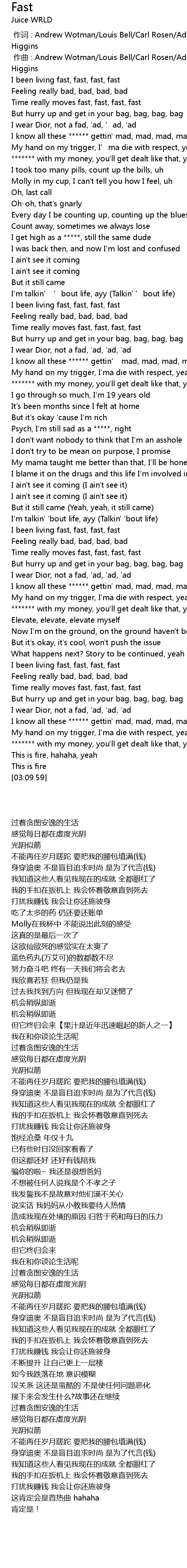 | [02:38.62] | I been living fast, fast, fast, fast |