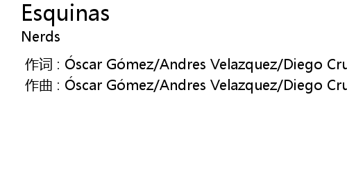 | [00:00.000] | 作曲 : Óscar Gómez/Andres Velazquez/Diego Cruz/Felipe Garcia |