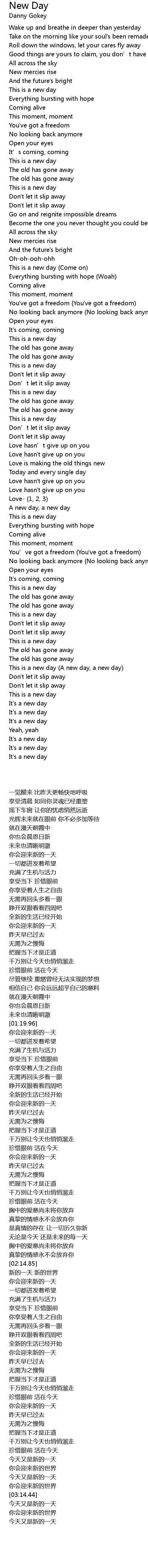 | [03:01.39] | This is a new day A new day, a new day |