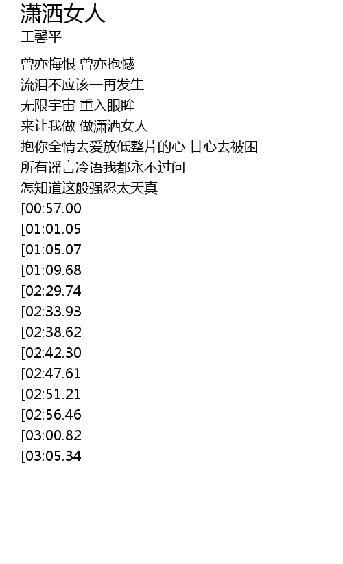 | [00:32.27] | 来让我做 做潇洒女人 |