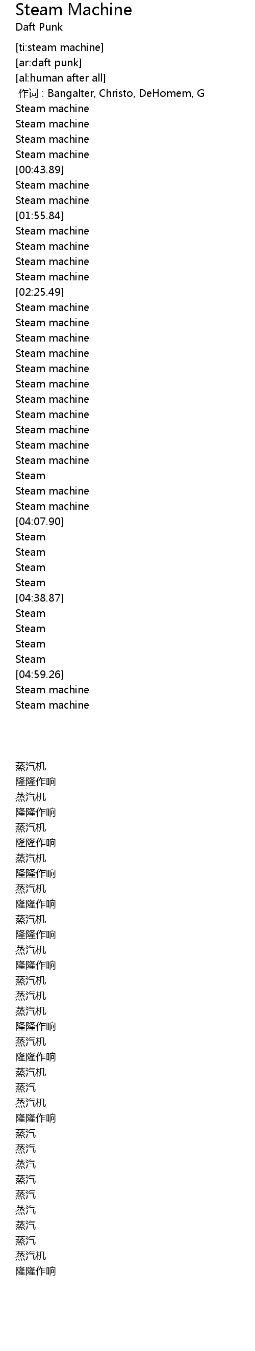 | [02:59.62] | Steam machine |