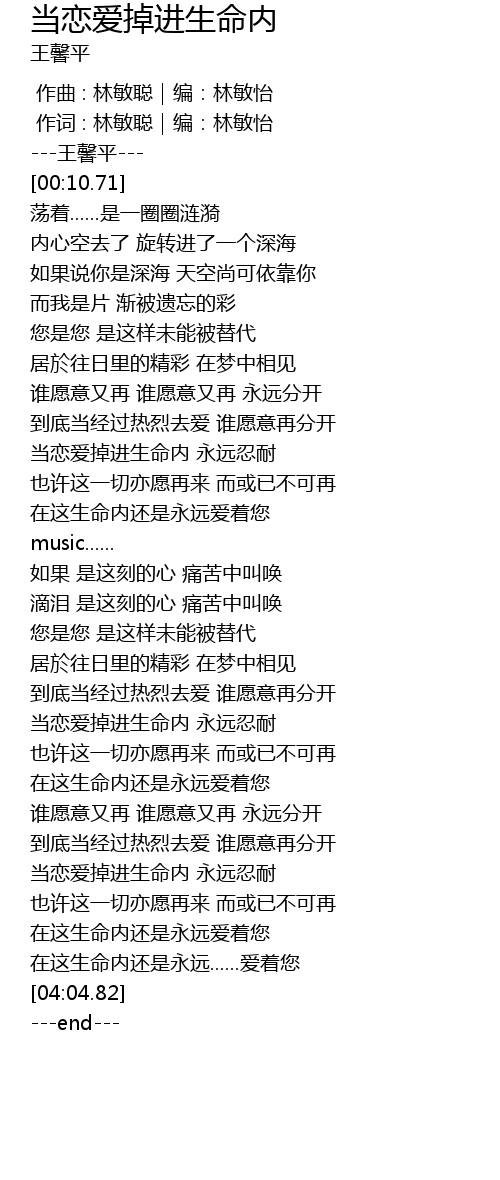 | [03:30.30] | 当恋爱掉进生命内 永远忍耐 |