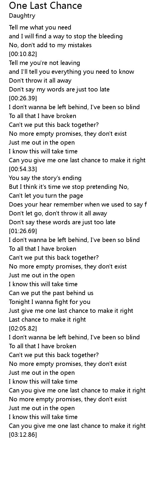 Just give me one last chance to make it right |