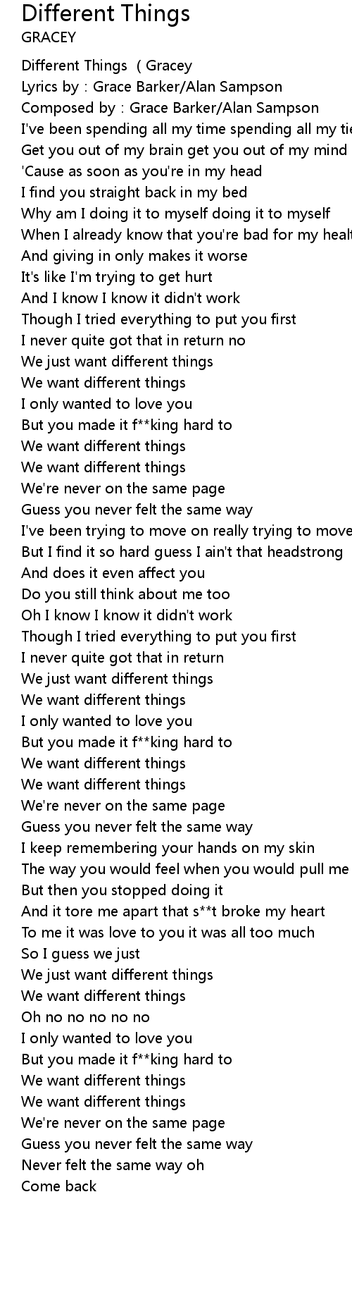 | [00:00.470] | Different Things (Gracey |