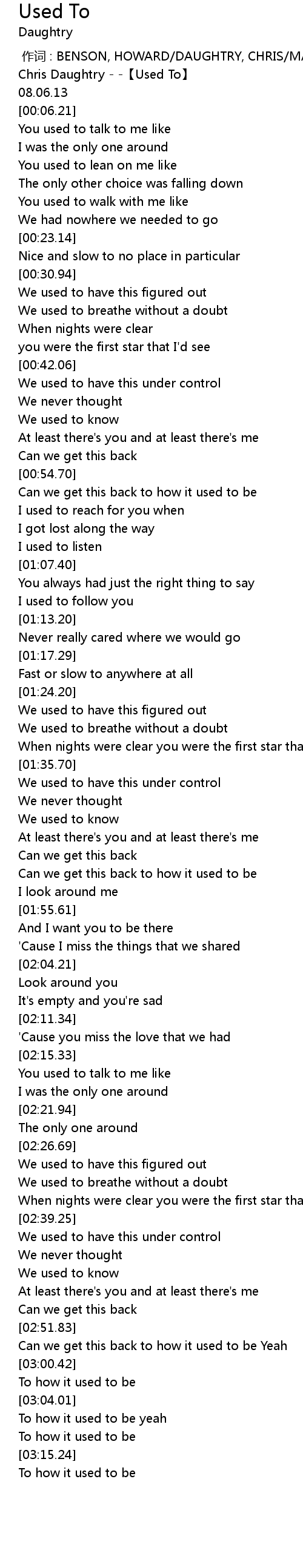 | [00:00.57] | Chris Daughtry Used To |