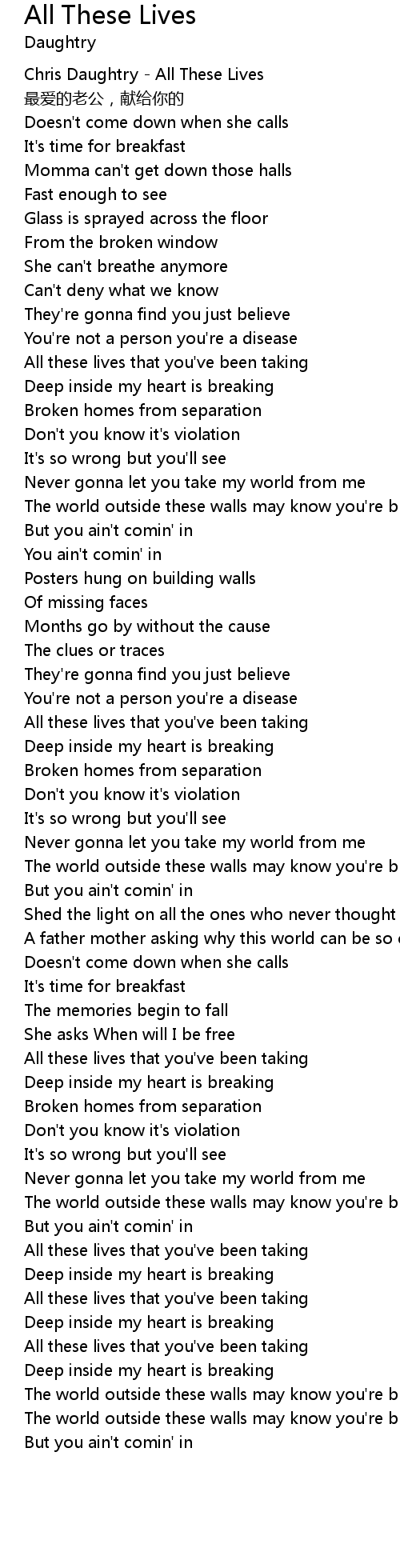 | [00:02.00] | Chris Daughtry - All These Lives |