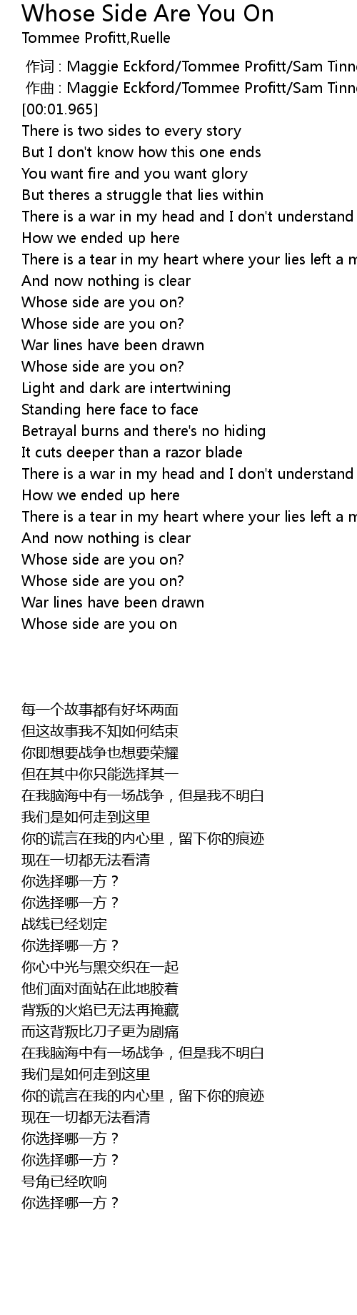 | [00:00.000] | zuo ci : Maggie Eckford Tommee Profitt Sam Tinnesz |