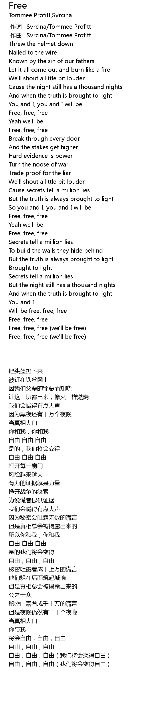 | [00:00.000] | zuo ci : Svrcina Tommee Profitt |