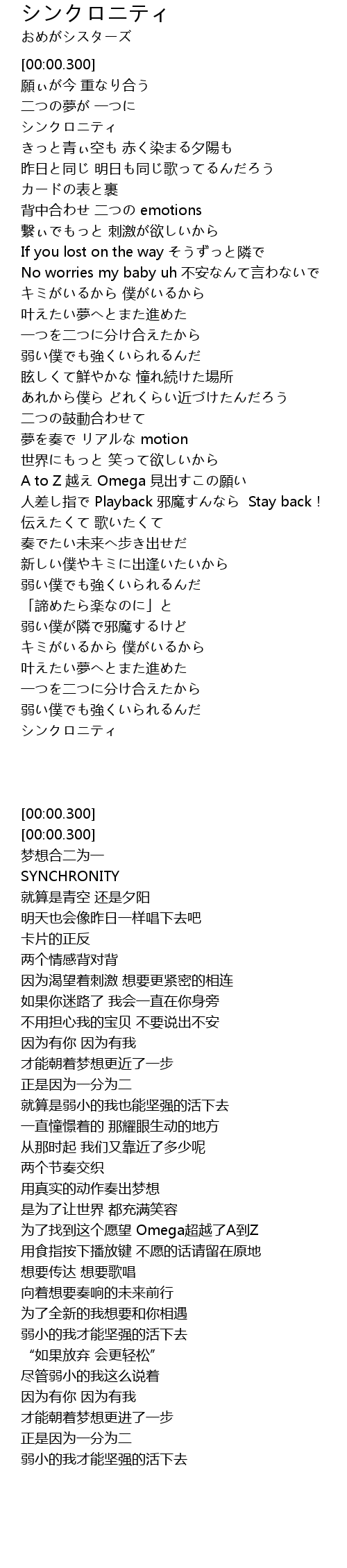 | [01:51.000] | A to Z 越え Omega 見出すこの願い |