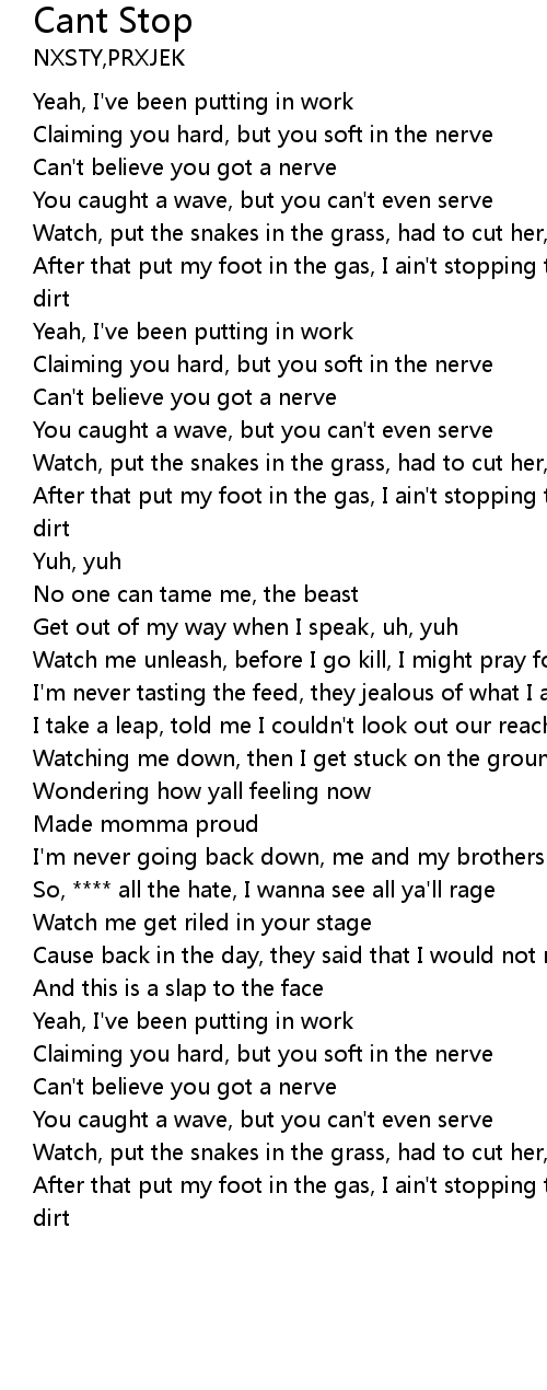 | [01:14.47] | Watch me unleash, before I go kill, I might pray for the week, uh, yuh |