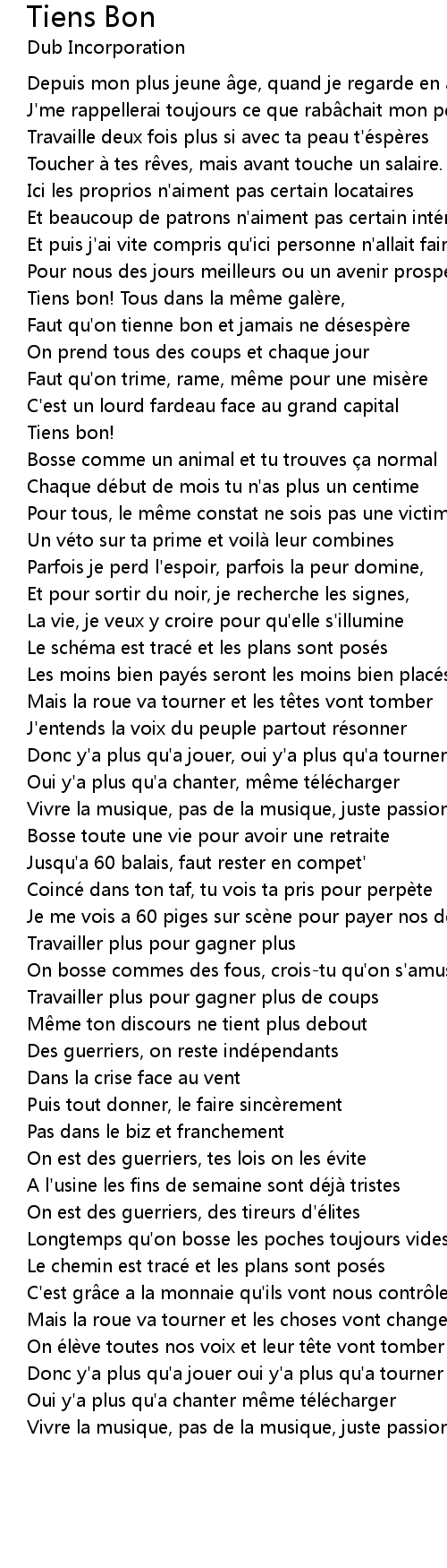 | Song | Tiens Bon |