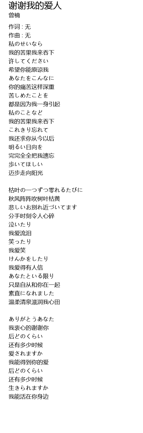 | wǒ zhōng xīn de xiè xiè nǐ | |