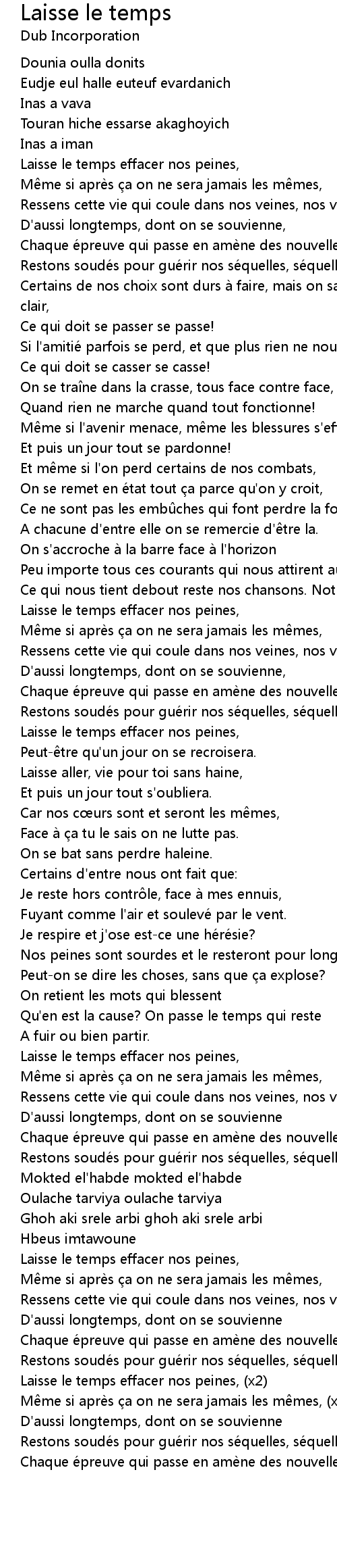 | Ce qui nous tient debout reste nos chansons. Notre son. | |