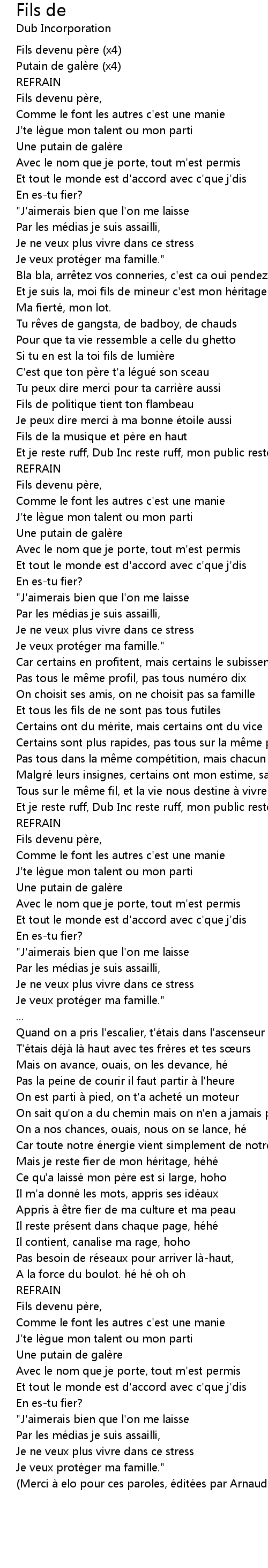 | (Merci à elo pour ces paroles, éditées par Arnaud & Cyril) |