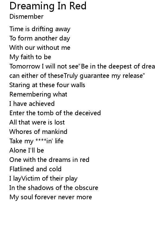 | Tomorrow I will not see"Be in the deepest of dreamsor the darkest of deathsNor can either of theseTruly guarantee my release" | |