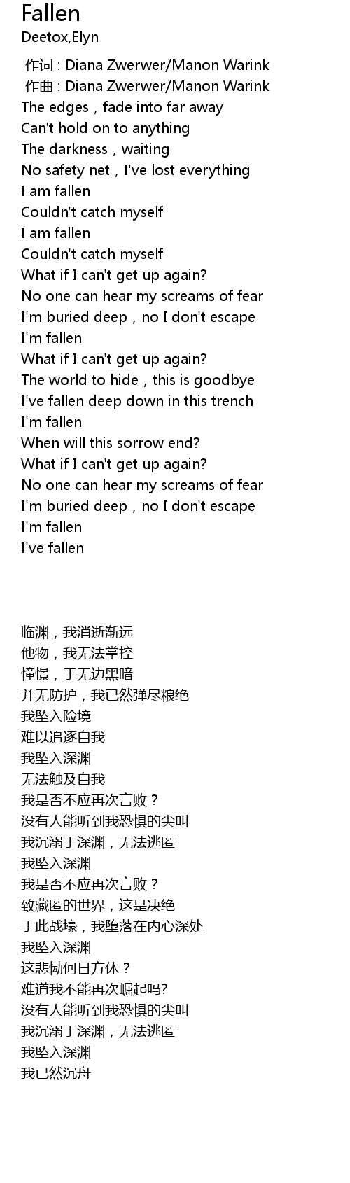| [02:16.89] | I' ve fallen deep down in this trench |