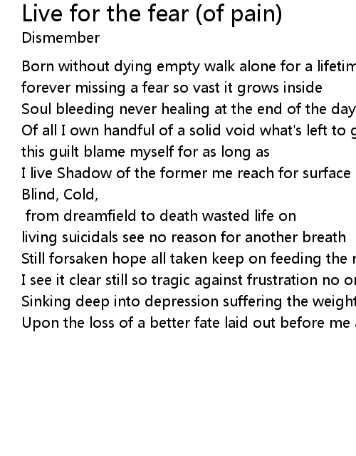 Bitter <i>[sings "Desire" 1st time] from dreamfield to death wasted life on living suicidals see no reason for another breath |