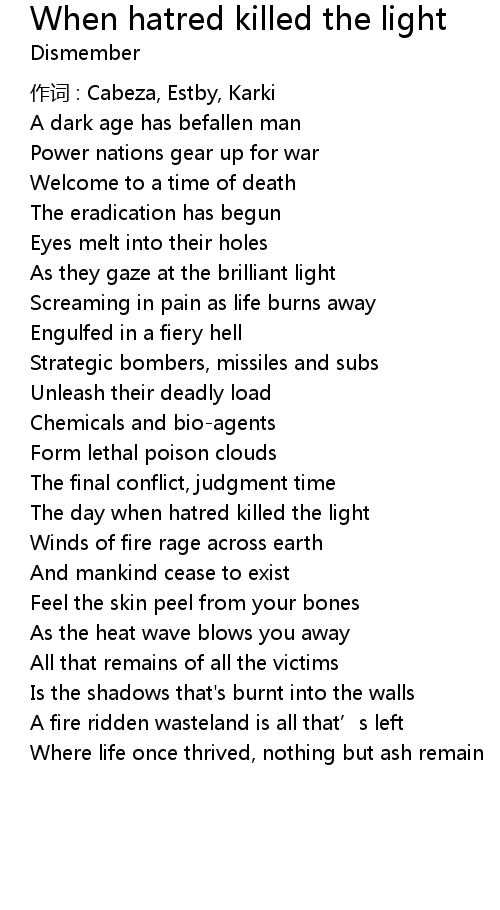 | Song | When hatred killed the light |