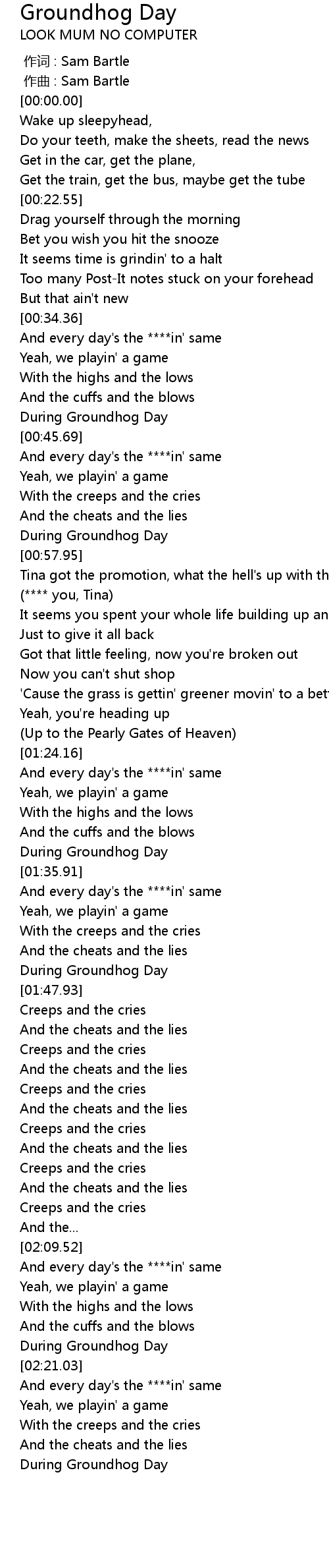 | [02:18.95] | During Groundhog Day |