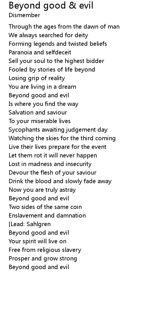 Beyond good and evil |