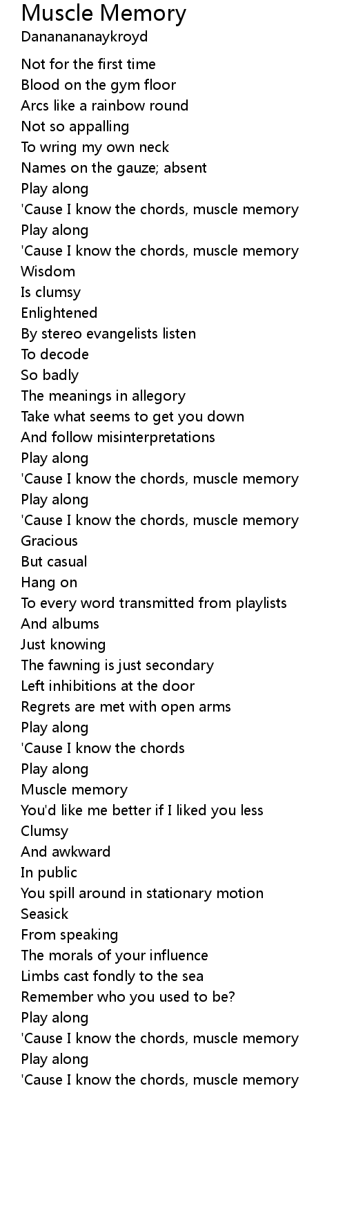 'Cause I know the chords, muscle memory |